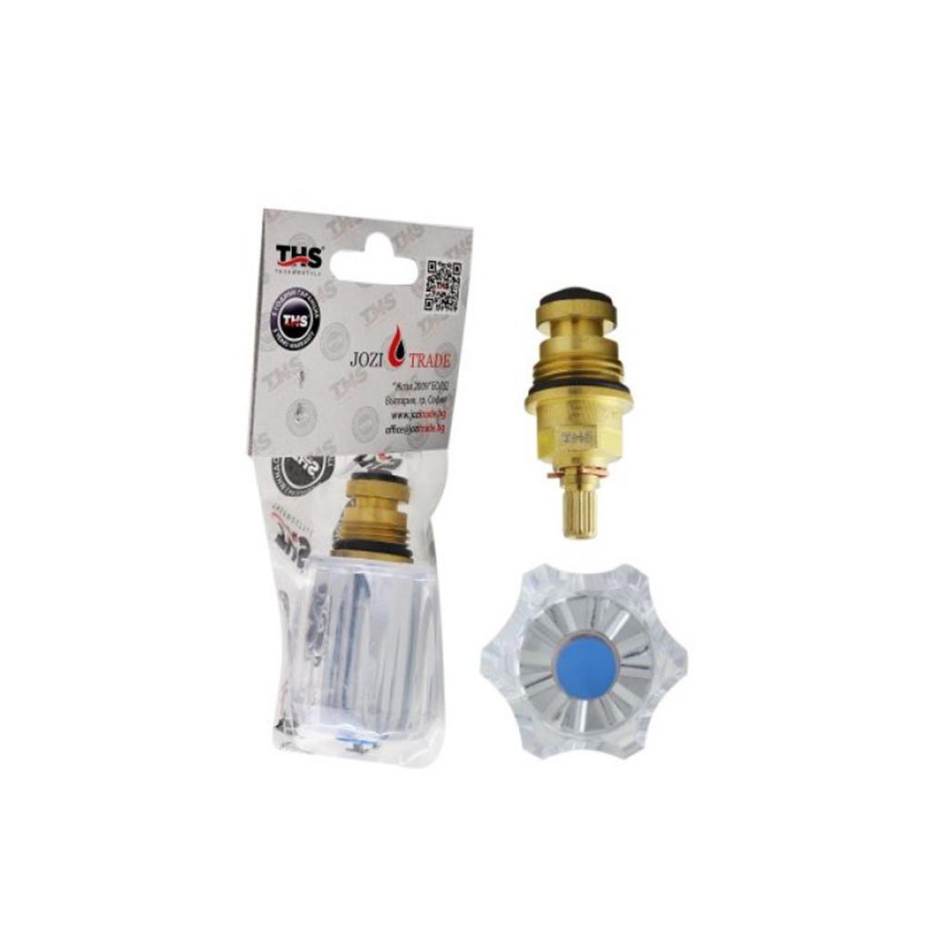 Този комплект представлява цялостно и висококачествено решение за възстановяване на функционалността и естетиката на вашата смесителна батерия. Той включва затварящ механизъм (глава) и съответстваща ръкохватка с дизайн "ДАЛИЯ". Изключително подходящ е за бърза и надеждна подмяна на износени или дефектирали вътрешни части и външни елементи на смесителя.
