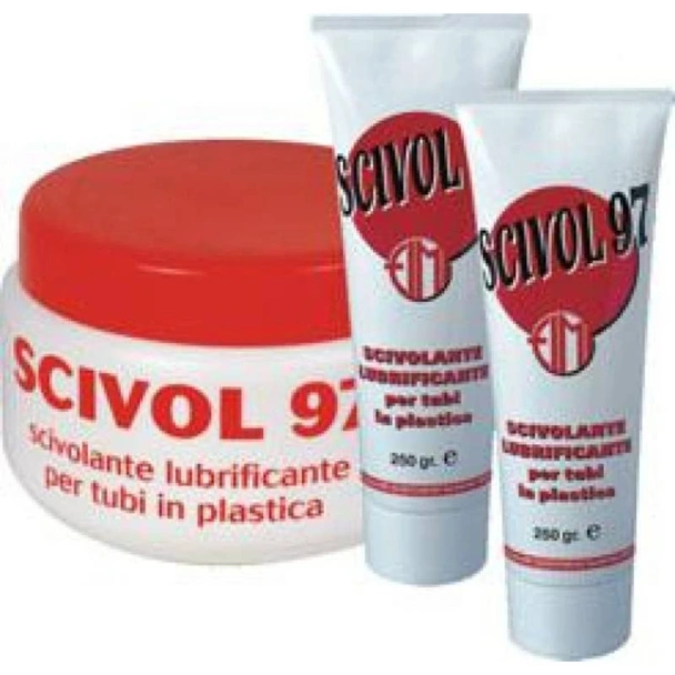 Силиконова смазка за ПВЦ и ППК тръби Scivol 97 улеснява монтажа на PVC тръби, предпазва гумените уплътнители от стареене и разлагане. Заменя традиционния сапун, базирани лубриканти.