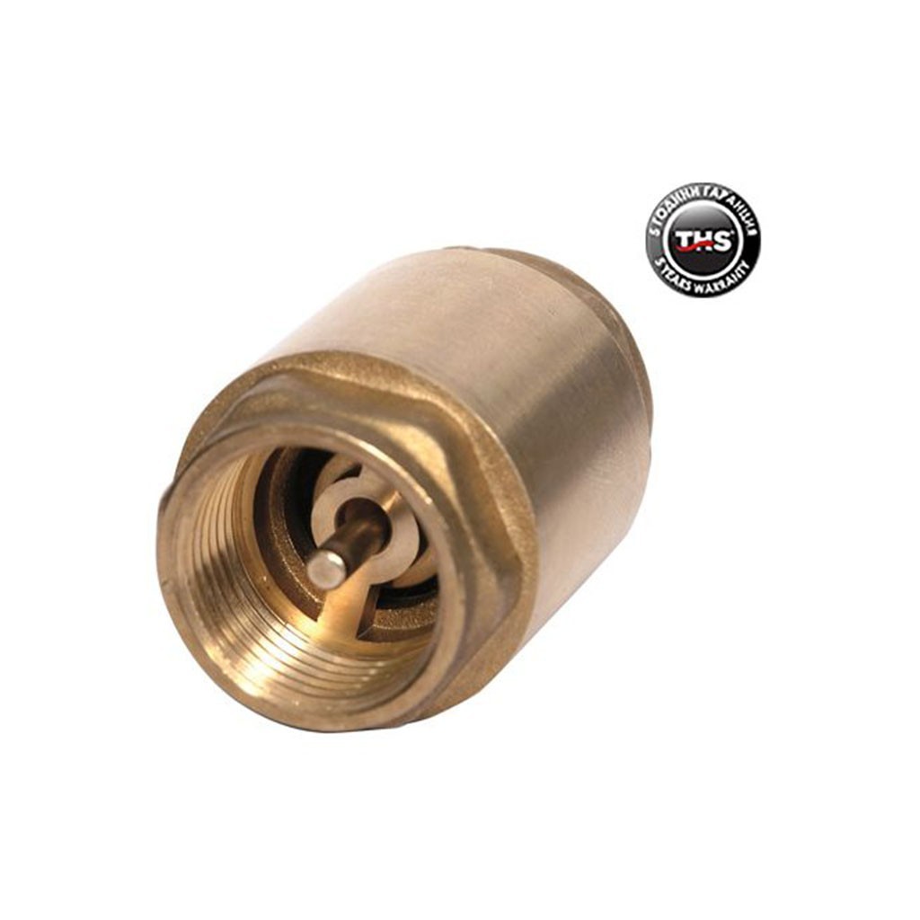 Возвратният вентил е конструиран от висококачествен месинг, материал известен със своята устойчивост на коррозия и висок модул на твърдост. Тялото на вентилът има удебелени стени, което осигурява дополнителна издържливост при високо налягане. Дисковият клапан е също изработен от месинг, което гарантира съответствие на материалите и дълготрайна функция. Пружината е от неръждаева стомана, която не корозира и издържа множество цикли на работа. Уплътнителят на клапана е изработен от каучук, устойчив на висока температура, което позволява използване в отоплителни и парни системи. Издължените резби на тялото позволяват здраво закрепване със стандартни гайки без риск от откъртане.