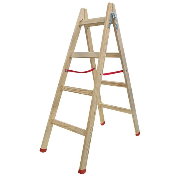Двураменна дървена стълба с 4 стъпала на рамо и височина 1.35 м, изработена от бял бор.