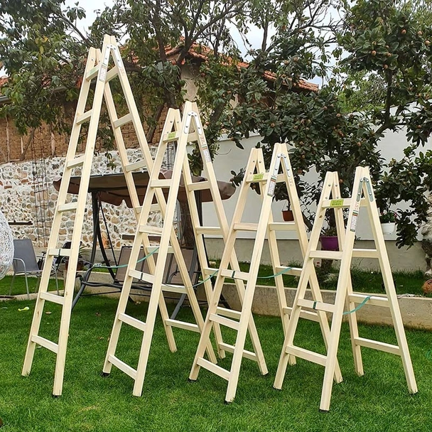 Двураменна дървена стълба ЕКО с 6 стъпала на рамо и с товароносимост 150 кг.