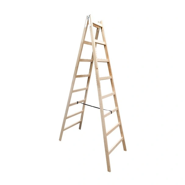 Двураменна дървена стълба с 8 стъпала на рамо и височина 2.55 м, изработена от бял бор.