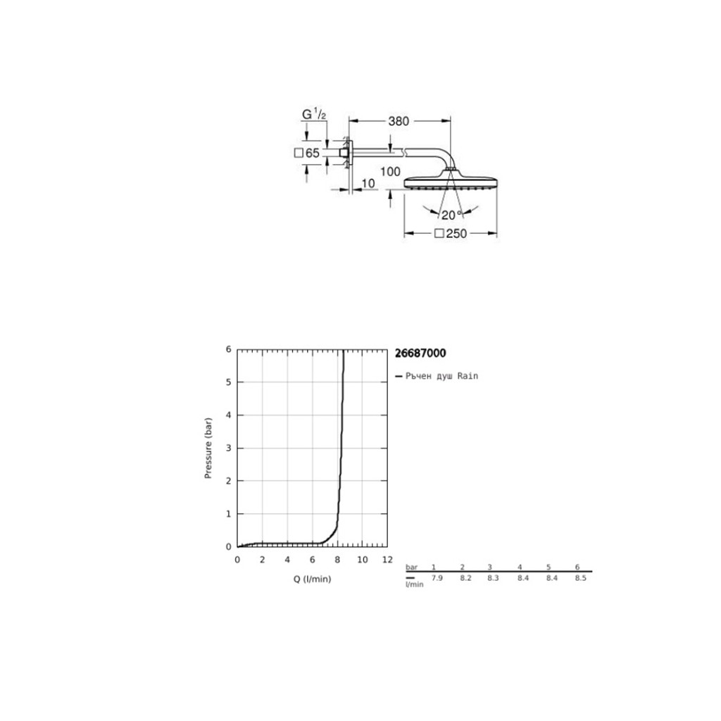 Специфики на душ питата Tempesta 250 Cube (26687000):