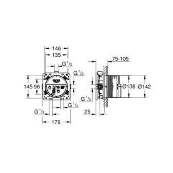 Специфики на тялото за вграждане 1/2'' Rapido SmartBox (35604000):