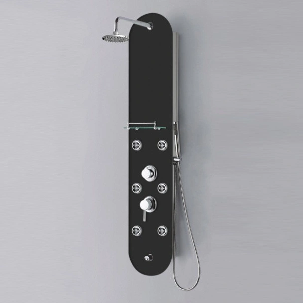 Панелът "Мая" е оборудван с всичко необходимо, за да превърне ежедневния душ в истински СПА ритуал. Неговите 6 мощни хидро джета са стратегически разположени, за да масажират тялото и да облекчат напрежението в мускулите. Панелът включва и удобен смесител за прецизен контрол на температурата на водата, както и превключвател, с който лесно можете да избирате между различните функции. Независимо дали предпочитате освежаващ поток от стационарен душ или гъвкавостта на подвижния душ с шлаух, този душ панел предлага решение за всяко ваше предпочитание. Добавената лавица осигурява практично място за съхранение на душ гел или шампоан, което допълнително повишава неговата функционалност.