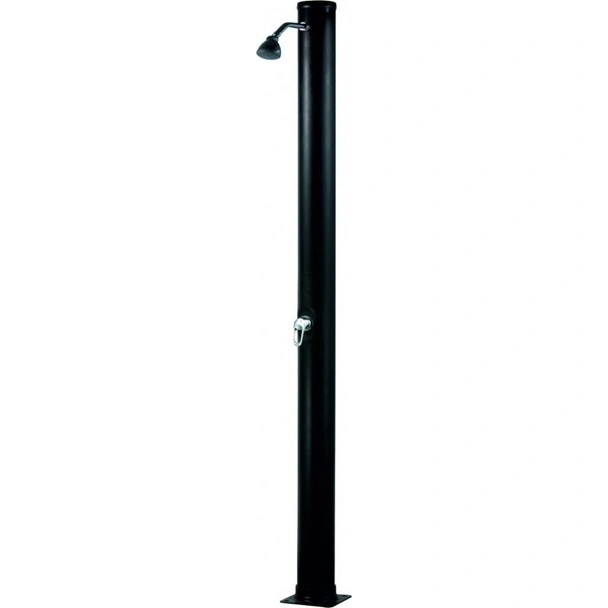 Комплект соларен външен душ на производителя Inter Ceramic с вместимост 18 л. Стационарният душ разполага с дюза за крака и бутон за време и се предлага в черен цвят. Работи на принципа на обикновения градински душ, като се свързва само с водопровода и тялото му играе ролята на слънчев бойлер. Чудесно и ефективно предложение за Вашия двор или градина.