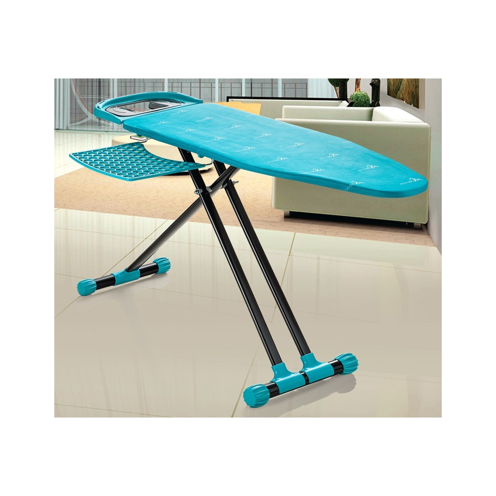 - Голяма работна площ: Зоната за гладене с размери 42х123 см е достатъчно широка за лесно гладене на спално бельо, пердета или големи дрехи.