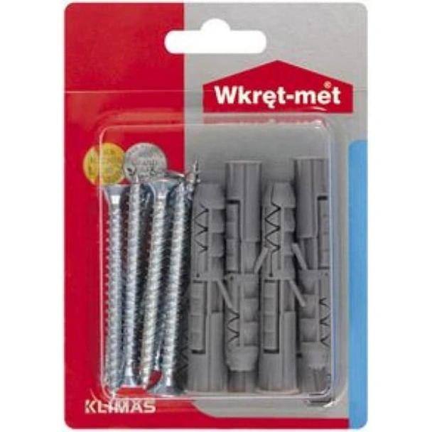Комплект дюбели за бетон с винтове с фрезенкова глава на марката WKRET-MET. Изработен от полипропилен и стомана. В блистер от 6 бр.
