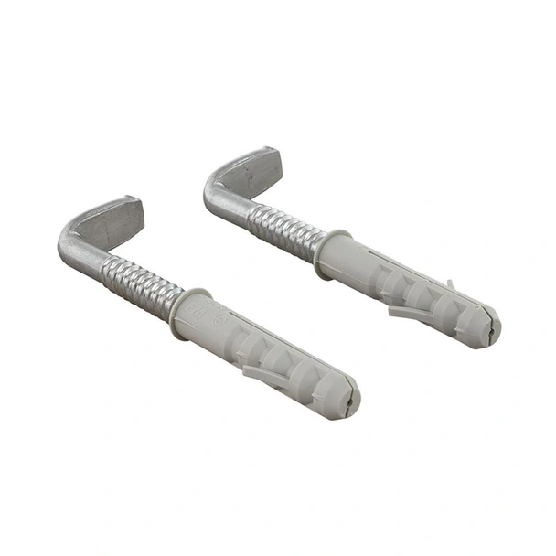Комплект крепежи за монтаж на бойлер. Комплекта се състои от две поцинковани Г-образни куки и два дюбела.Товароносимост на сряз в бетон 50 кг на кука.