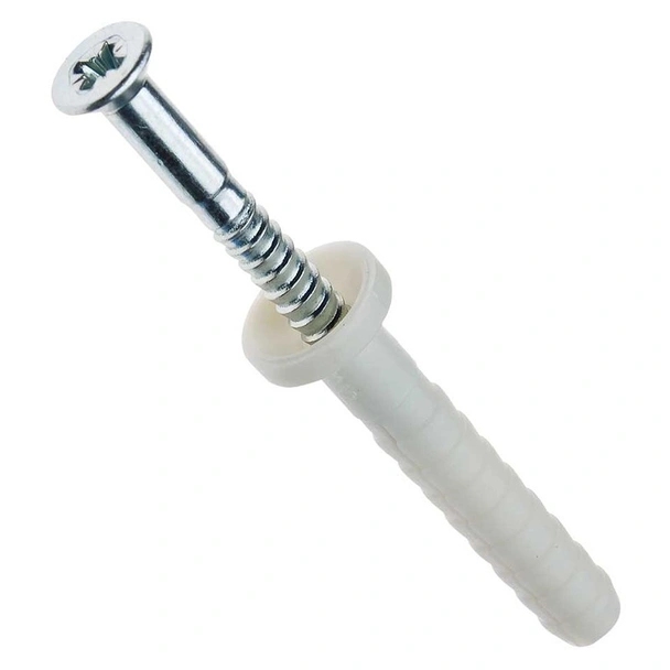 Пластмасов дюбел с метален винт тип К6 на марката KNAUF, предназначен за закрепване на таванни, стенни и подови профили UW, MD и CW.