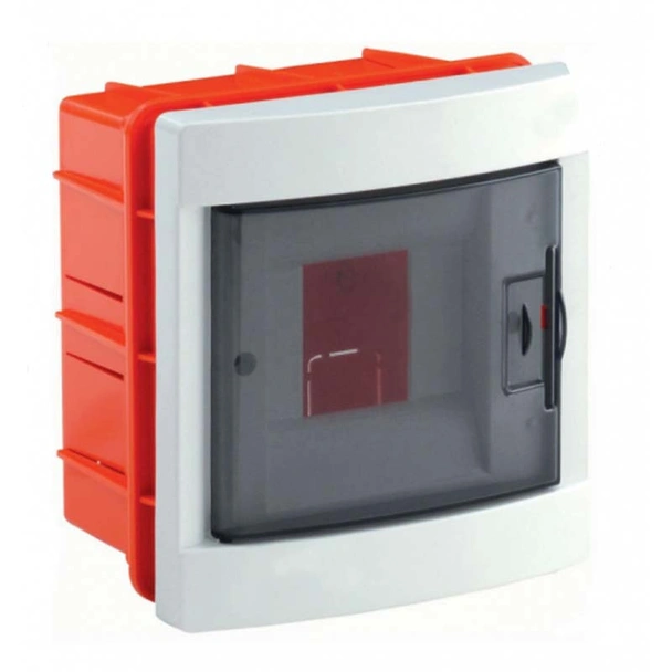 Електрическо табло с едноцветен прозрачен капак, 4 бр. модули, 1 ред, степен на защита IP40. Размерите на кутията са 140x98x150 мм. Предназначена е за вграден монтаж. Изработена е от висококачествени самогасящи материали, неподдържащи горенето. Корпусът е издръжлив на открит огън и високи температури. Монтираната в кутията апаратура е защитена от пряк допир до тоководещите части. Възможност за комплектоване с DIN шина при монтаж на апаратура и клемореди за свързване на неутралата и заземителния проводник.