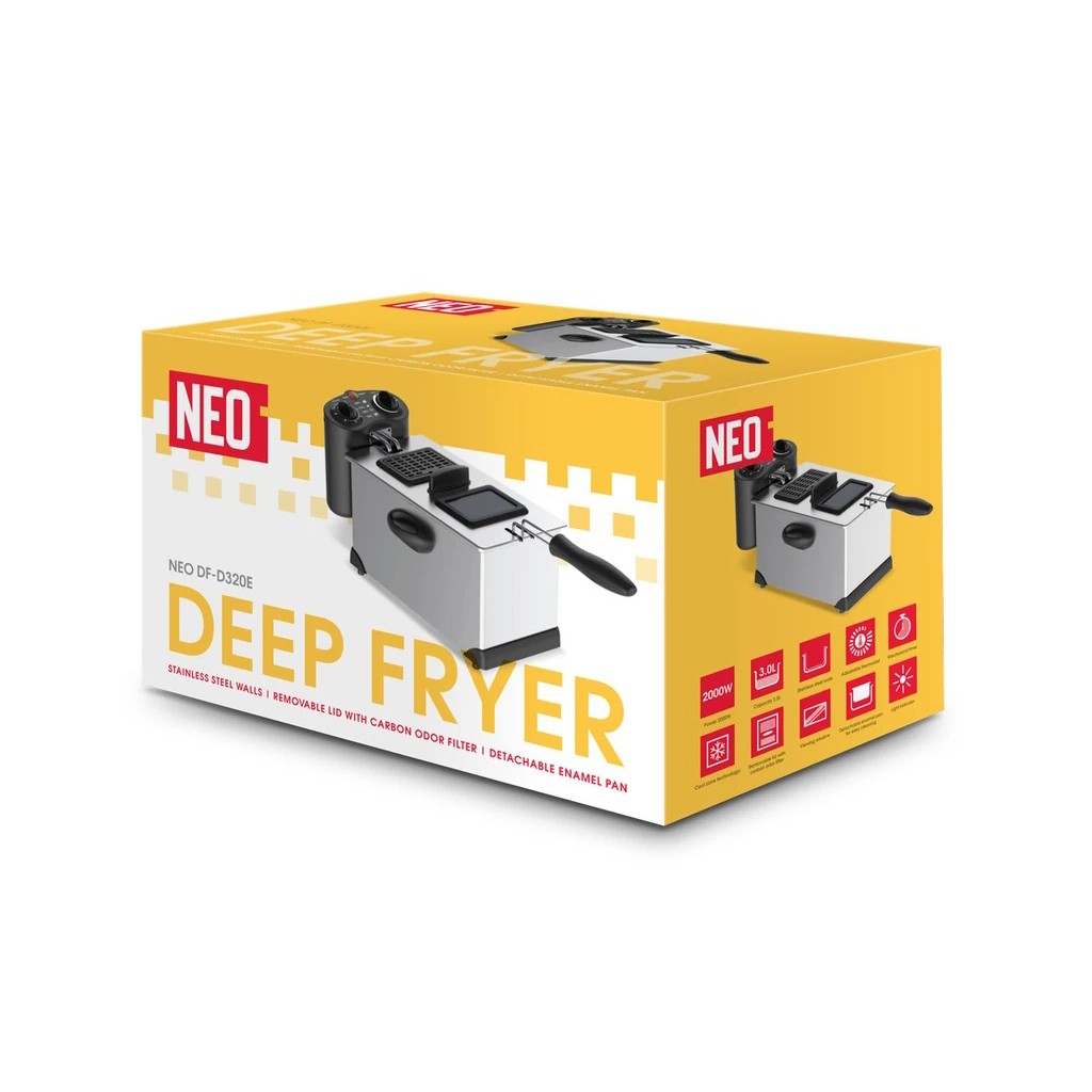 Фритюрникът NEO DF-D320E е създаден за любителите на хрупкавата и вкусна храна, които търсят надежден и удобен уред за своята кухня. Със своя по-голям капацитет и висока мощност, той е подходящ за приготвяне на ястия за цялото семейство или за гости. Комбинацията от практични функции, качествени материали и модерен дизайн го превръща в отличен избор за ежедневна употреба.
