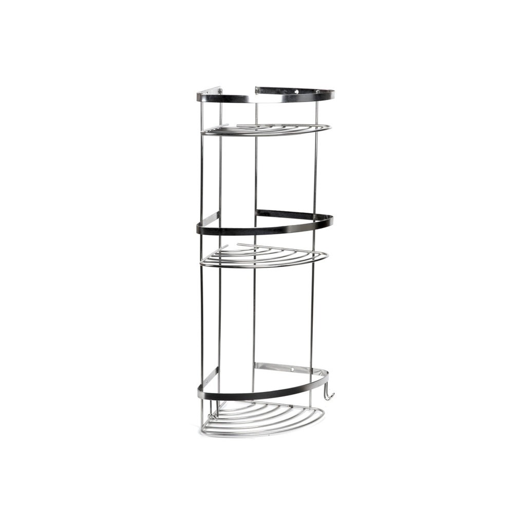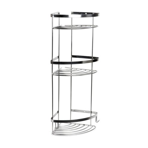 Добавете стил и функционалност към вашата баня с ъглова хромирана етажерка за баня на три нива FORMA VITA. Тя комбинира практично разпределение на пространството и елегантен дизайн, който се вписва перфектно в модерни интериори. С трите си нива и допълнителни закачалки в долната част, тази етажерка предлага удобен начин да подредите принадлежностите си, без да претрупвате помещението.