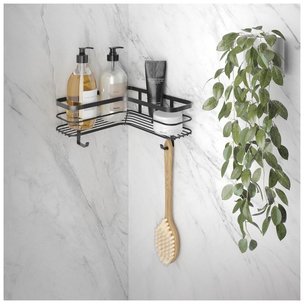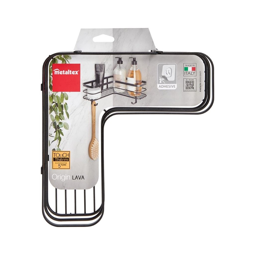 Ъглова Г-образна етажерка за баня черна U-FIX LAVA METALTEX