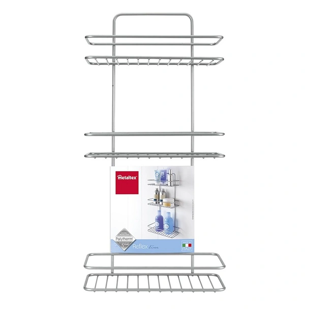 Внесете ред и организация във вашата баня с практичната правоъгълна етажерка Reflex METALTEX. Този функционален аксесоар с три нива е идеалното решение за съхранение на всичките ви основни тоалетни принадлежности, като същевременно придава модерен и изчистен вид на помещението. Изработена от устойчив на влага и корозия метал, тя е проектирана да издържи на агресивната среда в банята, без да губи своите качества и външен вид.