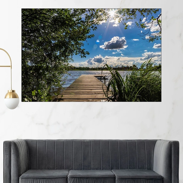 Дървен кей в езеро - картина пано за стена