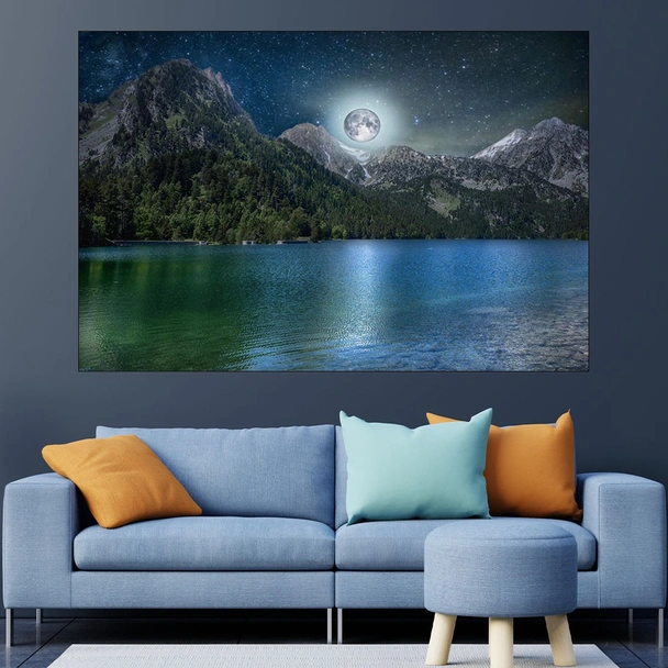 Езеро на лунна светлина - картина пано за стена