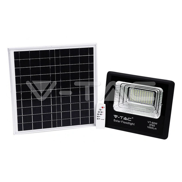 LED прожектор c мощност 20W на марката V-TAC. Те представляват практично и достъпно решение за осветление на външни пространства с използване единствено на слънчевата енергия. Високоефективният соларен панел в комплекта осигурява бързо зареждане на вградената в прожектора батерия. Продължителност на работа на прожектора e 8 часа. Време на зареждане чрез фотовалтаичния панел е 4 часа.