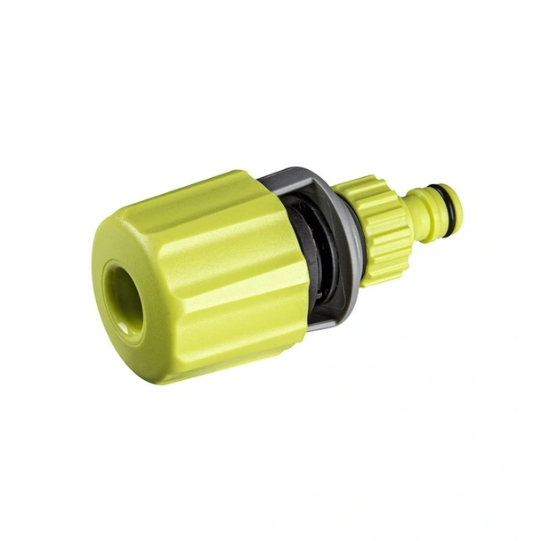 Монтира се лесно чрез затягане към смесителя и се свързва бързо към градински маркуч чрез бърза връзка.