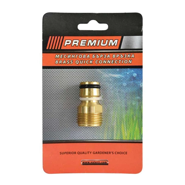 Месингов адаптер за бърза връзка с външна резба на марката Premium. Връзката е мъжка с присъединителен размер 1/2''.