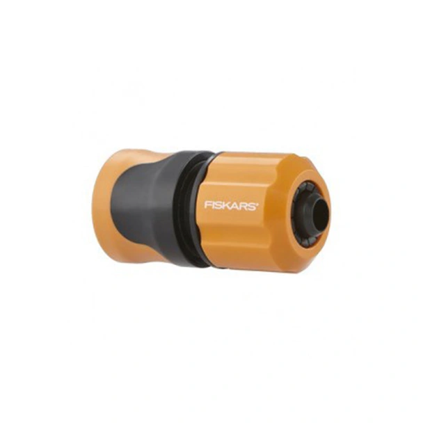 Бърза връзка за маркуч размер 13мм-1/2" на марката Fiskars разполага с механизъм, който спира потока на вода, за да позволи лесна смяна на пистолета за пръскане без да се налага спиране на водата от крана. Лесно се свързва към пръскачка, поливен пистолет или кран.