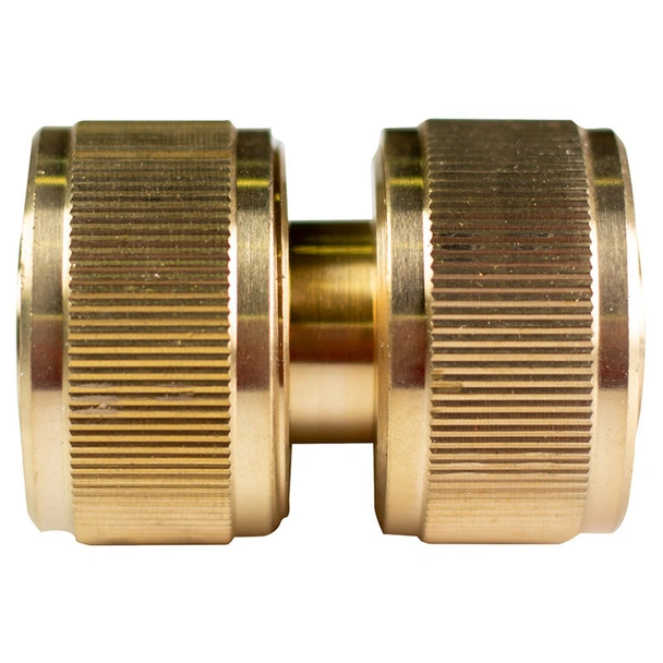 Месингов съединител за маркуч на марката Top Garden, с който може да се свързват и удължават различни видове маркучи с размер 3/4".