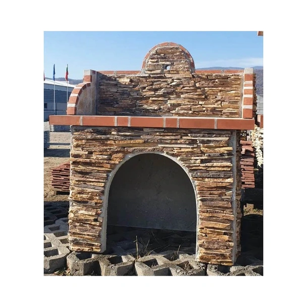 Притежава армирани панели ръчна изработка от бетон и облицовани с естествен камък.