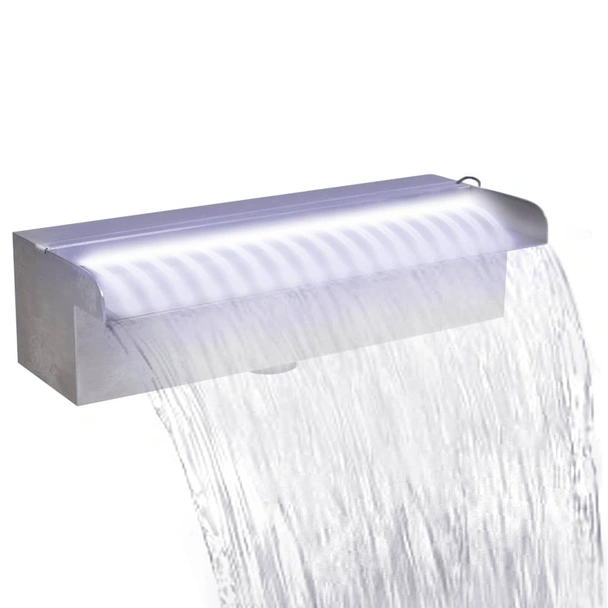 За разлика от обикновените модели, този фонтан е снабден с 15 вградени LED диода, които излъчват ярка бяла светлина. Оптичният ефект на светещата водна завеса е особено впечатляващ през нощта, когато светлината се пречупва през водната струя, създавайки магически отблясъци по повърхността на басейна. Дизайнът осигурява ламинарен и равномерен воден поток по цялата ширина на чучура, което е ключово за постигане на перфектна визуална хармония.