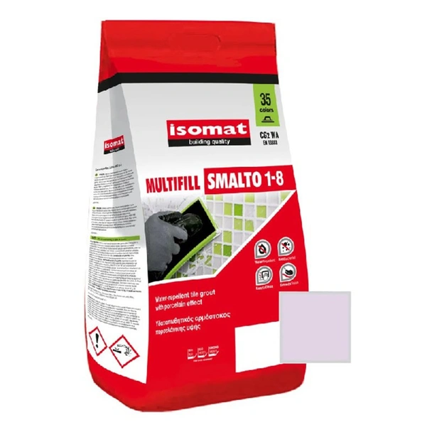 Тази фугираща смес включва мощни антибактериални компоненти, които ефективно предотвратяват появата на плесен и гъбички, поддържайки здравословна среда в помещенията. Multifill Smalto 1-8 е подходяща за всякакъв вид плочки – керамика, гранитогрес и камък, както за интериорни, така и за екстериорни проекти. Смесването и нанасянето са максимално улеснени, осигурявайки равномерно запълване без риск от пукнатини или избледняване на оригиналния лилав цвят.