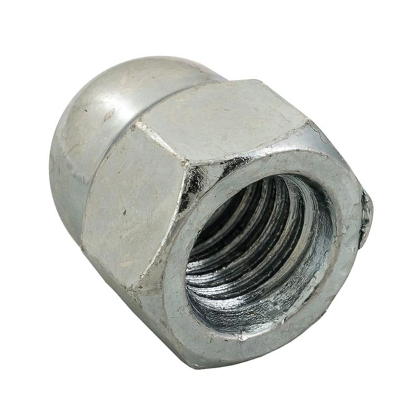 Калпачата (глуха) гайка , изработена по DIN 1587 от поцинкована стомана.Сферична повръхност, завършваща с шестостенен захват за ключ. Със стандартна метрична вътрешна резба.