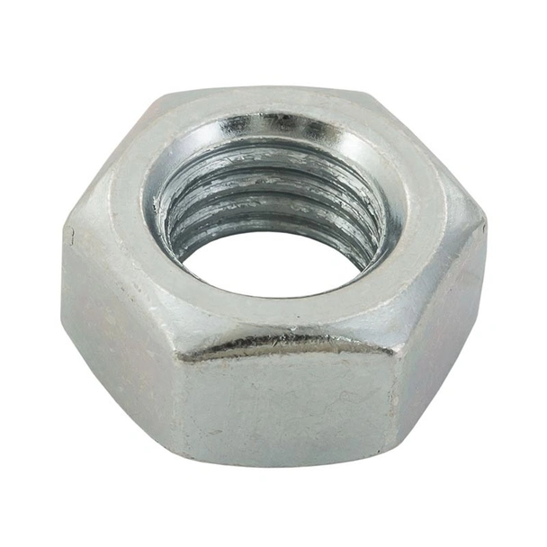 Стандартна шестостенна гайка с вътрешна стъпка на резбата. Поцинкована повърхност (цинк, Zn), изработеня по DIN 934 с клас на якост 5.