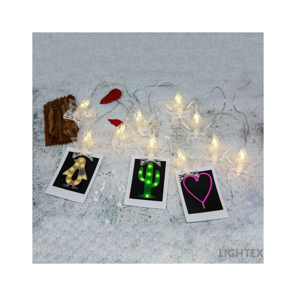 LED светещо въже на марката LIGHTEX с 10 звезди с щипка, на които могат да се закачат снимки, картички и др.