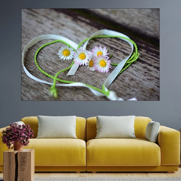 Маргаритки и сърце - картина пано за стена