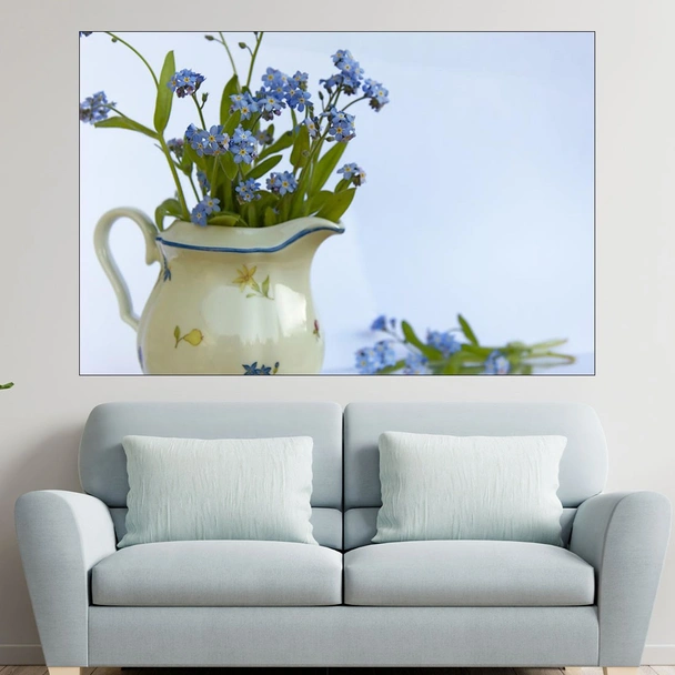 Сини пролетни цветя във ваза - картина пано за стена