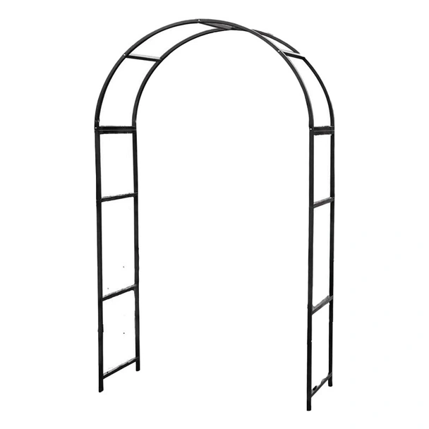 Изящна градинска арка, изработена от метал, подходяща за отглеждане на рози и други увивни растения.