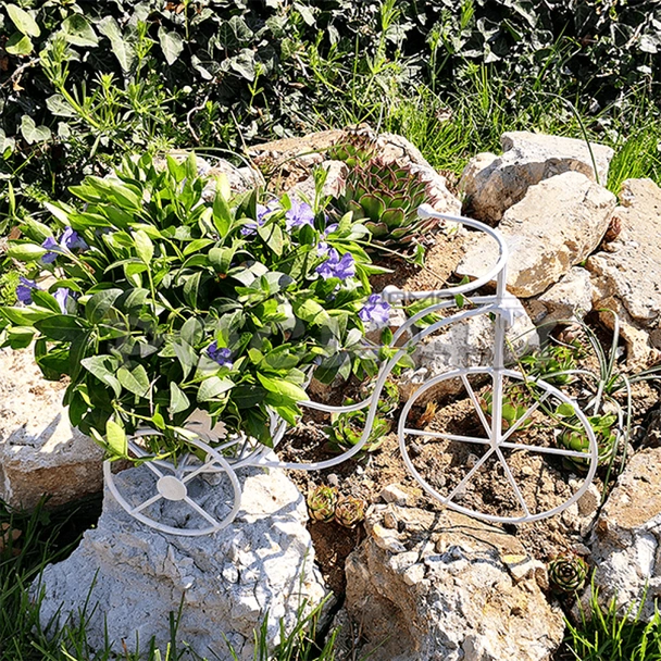 Красив метален цветарник във формата на колело, предназначен за декорация на дома или зелените площи в градината.