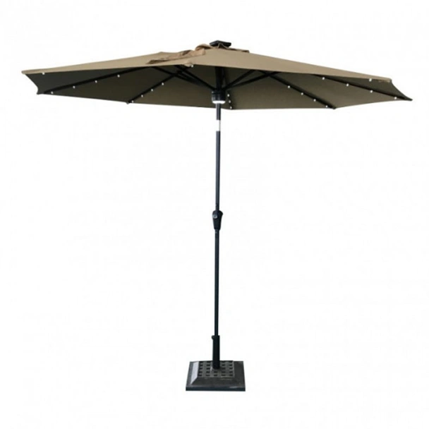 Градински чадър със соларно осветление Ф270 см бежов MY GARDEN