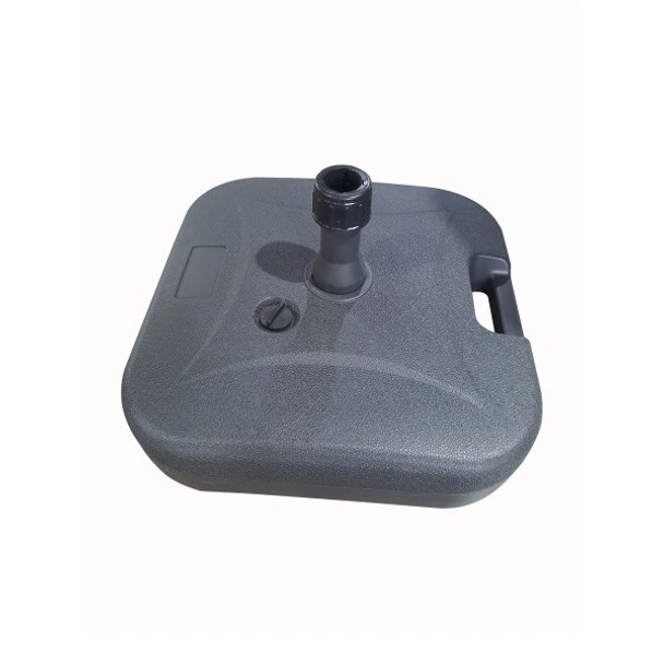 Изработена от здрав HDPE/PVC материал, стойката е изключително устойчива на атмосферни влияния, което я прави дълготрайна инвестиция. Нейните компактни размери – 44.5х44.5х15 см – я правят лесна за позициониране, а вместимостта от 21 литра осигурява необходимата тежест за стабилно закрепване на чадъра. Просто я напълнете с вода или пясък и се насладете на спокойствие, знаейки, че вашият чадър е здраво фиксиран.