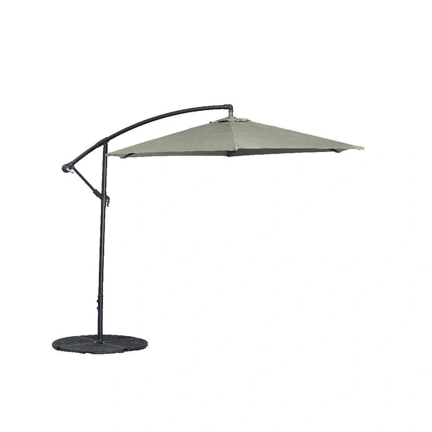 Чадърът разполага със здрава стоманена конструкция, гарантираща дълъг живот и устойчивост на външни условия. Централният стълб е със солиден диаметър от Ø48/42 мм и дебелина 1 мм, подкрепен от 6 здрави ребра (12х18 мм). Благодарение на висящия си дизайн, основата е разположена встрани, което осигурява максимално свободно пространство под чадъра. Това ви позволява гъвкаво да аранжирате вашите градински мебели, създавайки идеална зона за хранене, релакс или забавления без никакви пречки.