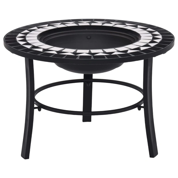 Мозаечна маса с огнище, черно и бяло, 68 см, керамика
