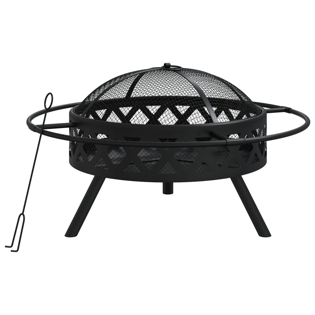 - Безопасни аксесоари: Мрежата ви позволява да наблюдавате горящия огън и безопасно ограничава огъня, както и предотвратява излитането на искри и отломки. Включеният метален ръжен може да се използва както за премахване на мрежестия капак, така и за пренареждане на трупите.