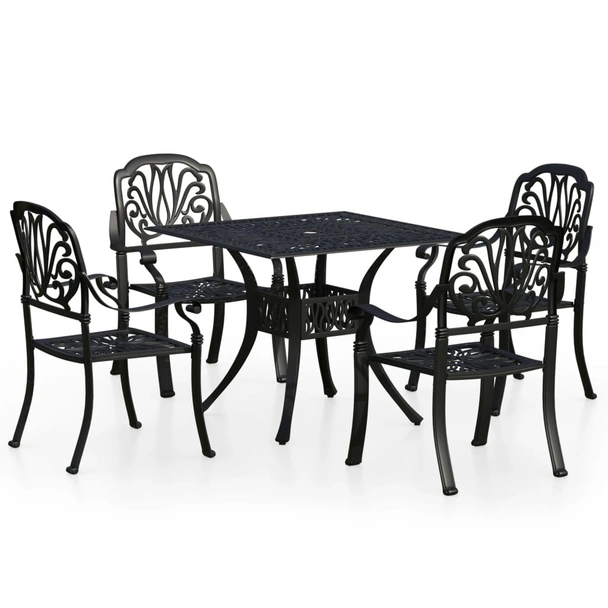 Бистро комплект, 5 части, кв. маса, лят алуминий, черен