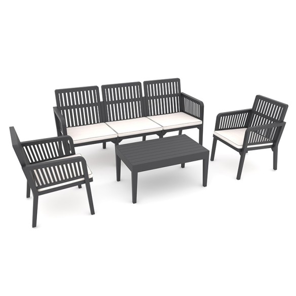 Стилен градински комплект Lizbon Lounge Set на турския производител RAINBOW в цвят антрацит, съдържащ маса, триместен диван и две кресла.