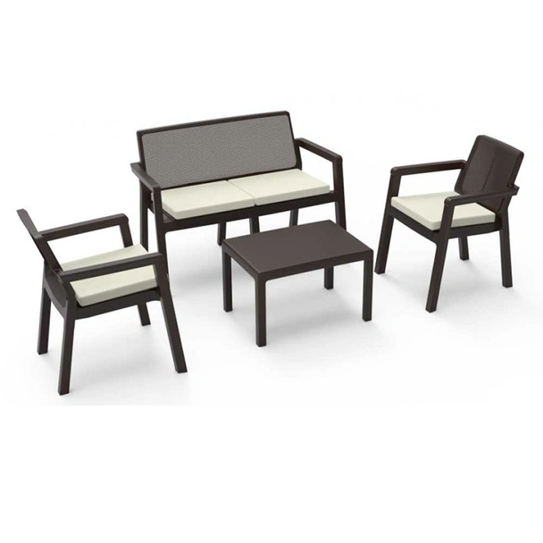 Произведен от първокласна полипропиленова суровина, градинският комплект Prestige е създаден да бъде изключително издръжлив и устойчив на различни вътрешни и външни условия. Този материал е известен със своята здравина и способност да издържа на атмосферни влияния като слънце, дъжд и температурни промени, гарантирайки дълъг живот на мебелите. Възглавниците са с пълнеж от 100% полиестер, осигурявайки допълнителен комфорт и лесна поддръжка. VIOLET HOUSE е марка, специализирана в дизайна на пластмасови изделия за дома, чиято основна цел е да произвежда продукти, отговарящи на международните стандарти за качество. Това ви дава сигурност, че инвестирате в продукт с доказано качество и надеждност.