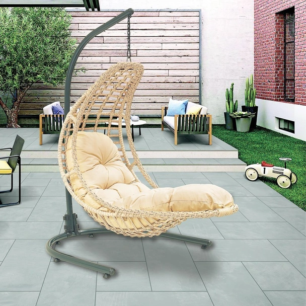 Открийте идеалното място за релакс с висящата люлка тип гнездо FORMET – елегантен и функционален акцент за вашата градина, веранда или тераса. Тази градинска люлка предлага не просто място за сядане, а истински оазис за спокойствие, където можете да се насладите на топлите слънчеви лъчи и на прохладния летен бриз. Със своя впечатляващ дизайн и удобна форма, люлката FORMET създава усещане за уют и хармония с природата. Нейната конструкция, наподобяваща гнездо, ви обгръща нежно, докато отворените ѝ плетки осигуряват перфектна циркулация на въздуха, за да се чувствате свежи и комфортно през целия ден.