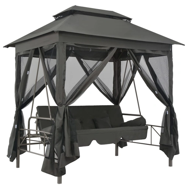 Градинска люлка със сенник, антрацит, 220x160x240 см, стомана