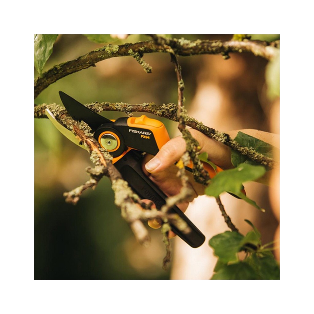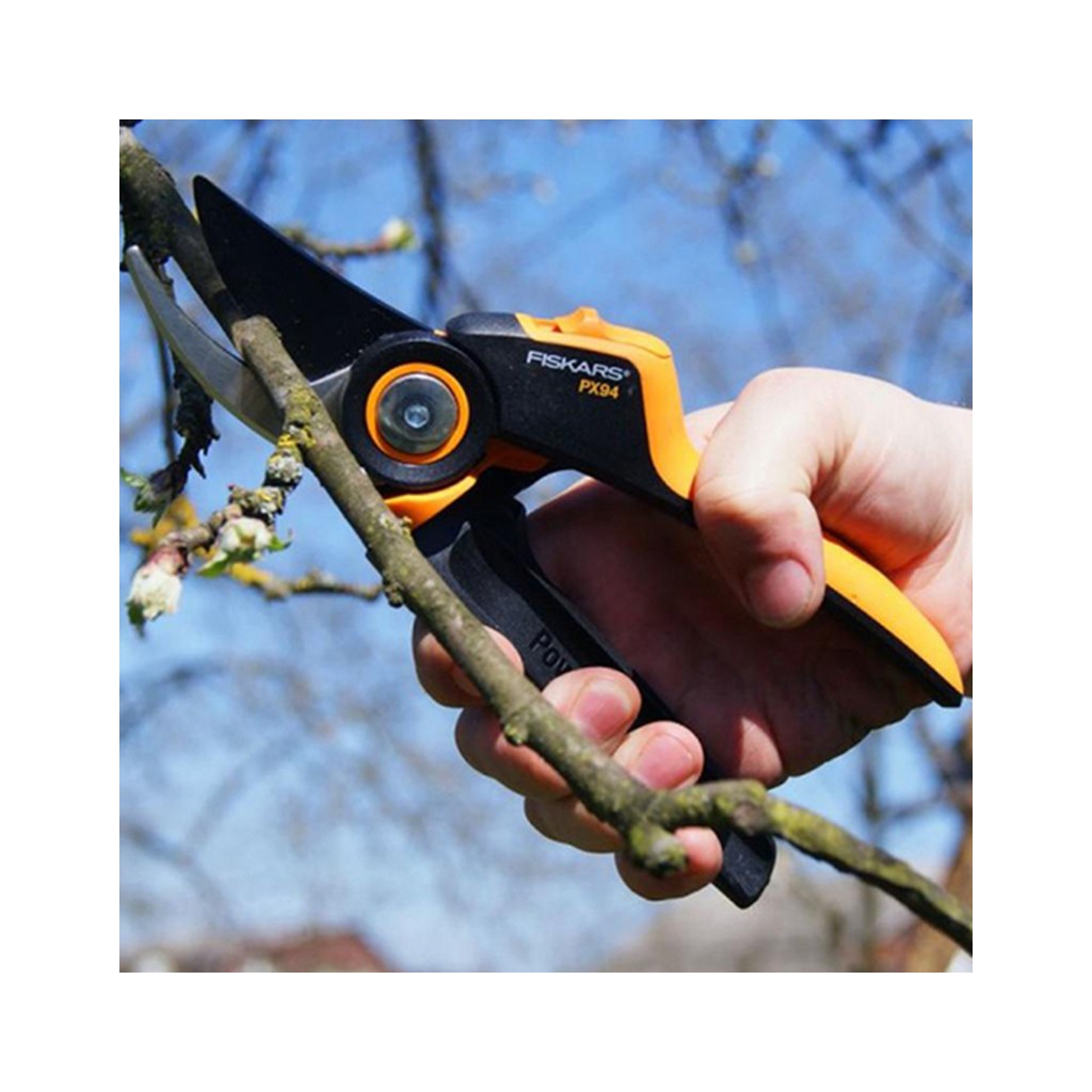 Ергономичната градинска ножица PowerGear™ PX94 на марката Fiskars е подходяща за всички видове резитба – есенна, пролетна и лятна. С тези мощни градински ножици може да подрязвате овощни дървета, декоративни дървета и храсти, лозови насаждения, рози и други растения. Изработена от изключително яка и износоустойчива стомана, тя се справя както с твърда суха дървесина, така и със свежи клони и стебла.