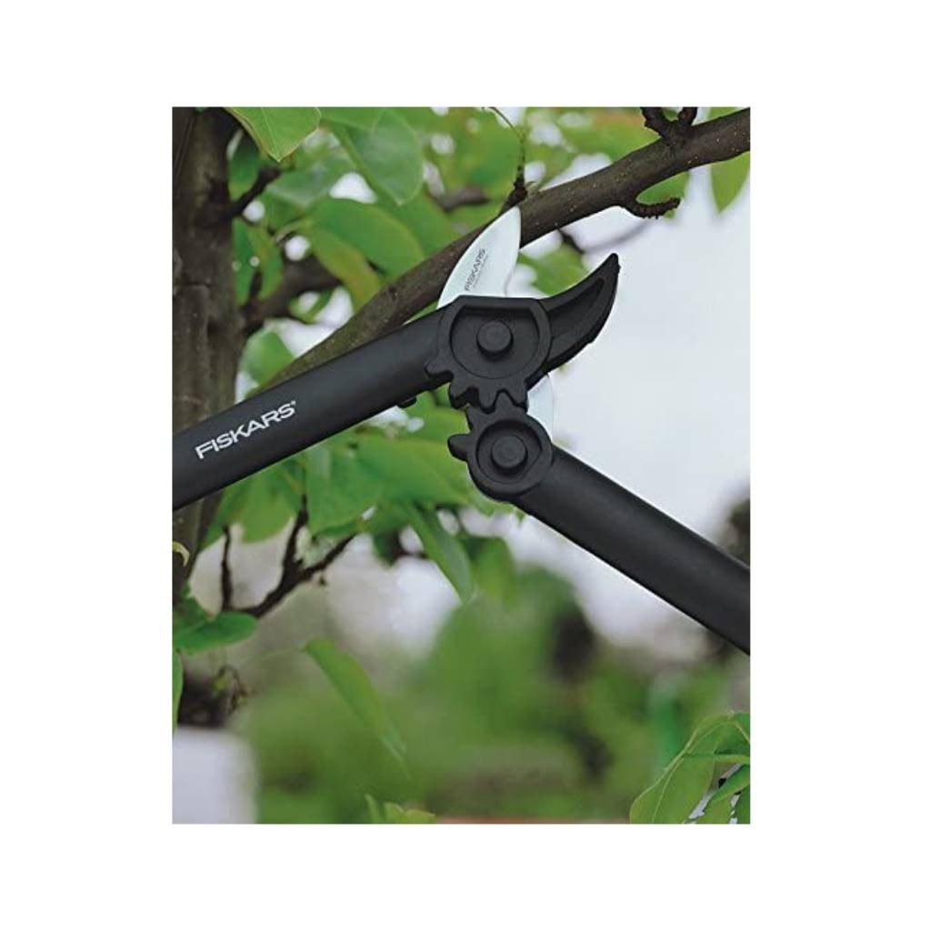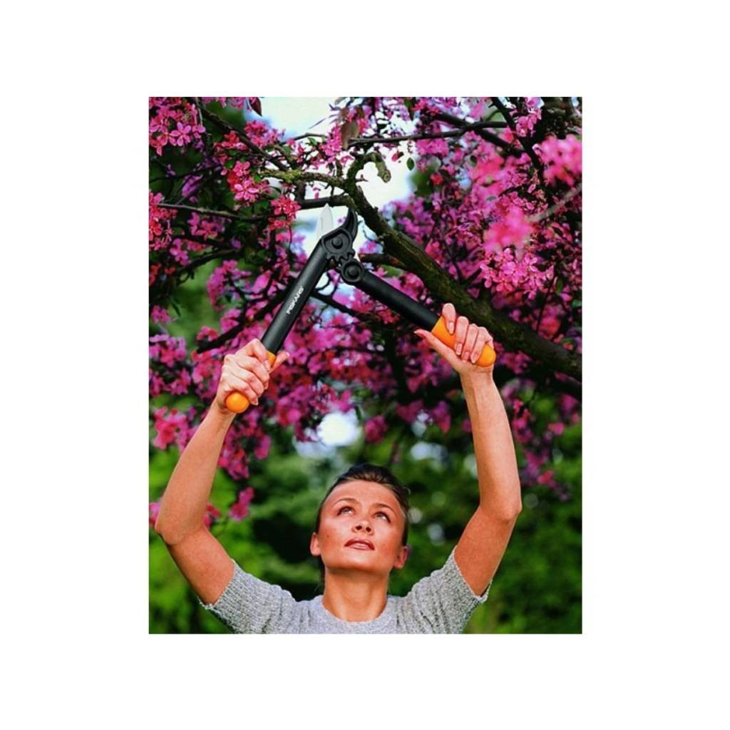 Градинските ножици за клони на Fiskars са подходящи за рязане на твърда и суха растителност в градината, като максималния диаметърn на среза достига ø50 мм. Оборудвани са с изключително леки и удобни дръжки благодарение на FiberComp™. Уникална функция PowerGear™ увеличава режещата сила и я разпределя равномерно, по време на цялото действие. Градинските ножици за клони са изработени от усилен със стъкло влакна полиамид, което ги прави леки и здрави. Остриетата са с покритие PTFE, което намалява триенето. Горното острие e направенo от устойчива на корозия хром-молибден-ванадиева стомана. Разполагат с пресрещащи се и разминаващи се остриета.