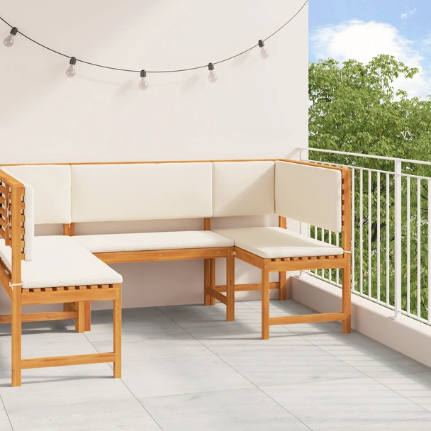 Комплект градинска пейка от 3 части с възглавници, направен от акациево дърво - VL3329105