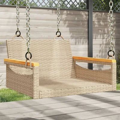 Пейка-люлка с възглавници, бежова, 63x62x40 см, полиратан - VL368175